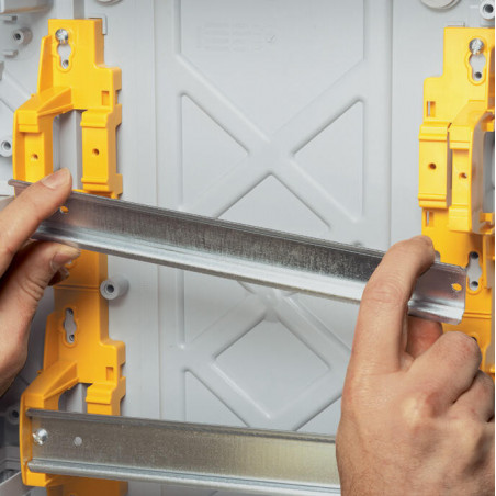 - Possibilité d’installer une platine de montage perforée à la place des rails DIN pour installer de l’appareillage non modulaire