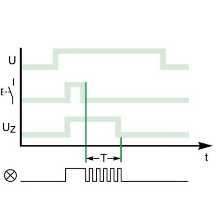 - Le cycle unique de temporisation ne débute qu’au relâchement d’un contact auxiliaire (bouton-poussoir)