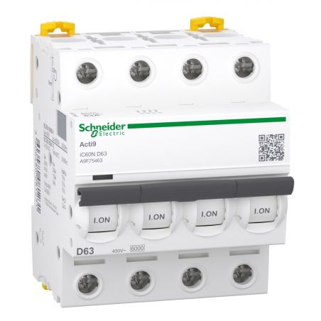 A9F75463 – Disjoncteur courbe D tetrapolaire 63A – 4P – 10kA – A vis – Schneider Electric Acti9 iC60N