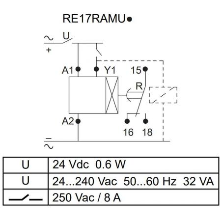 Relais temporisé 1OF – Zelio Time – Schneider Electric RE17RAMU Ce relais temporisé fait partie de la gamme Zelio Time de chez Schneider Electric, il peut être commandé par un capteur 3 fils. La sortie contact 8A 1OF (inverseur) du relais est actionné par une bobine de tension 24V à 240Vca (courant alternatif) ou 24Vcc (courant continu). De format modulaire le relais RE17RAMU se monte sur rail DIN avec un raccordement sur bornes à vis. Sa durée de temporisation peut être réglée de 1s à 100h grâce au sélecteur sur la façade du relais. Les fonctions du relais temporisé RE17RAMU de chez Schneider Electric