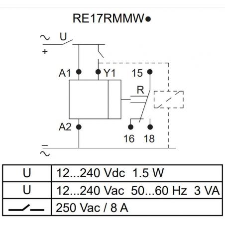 Caractéristiques principales du Relais temporisé Schneider de référence RE17RMMW :